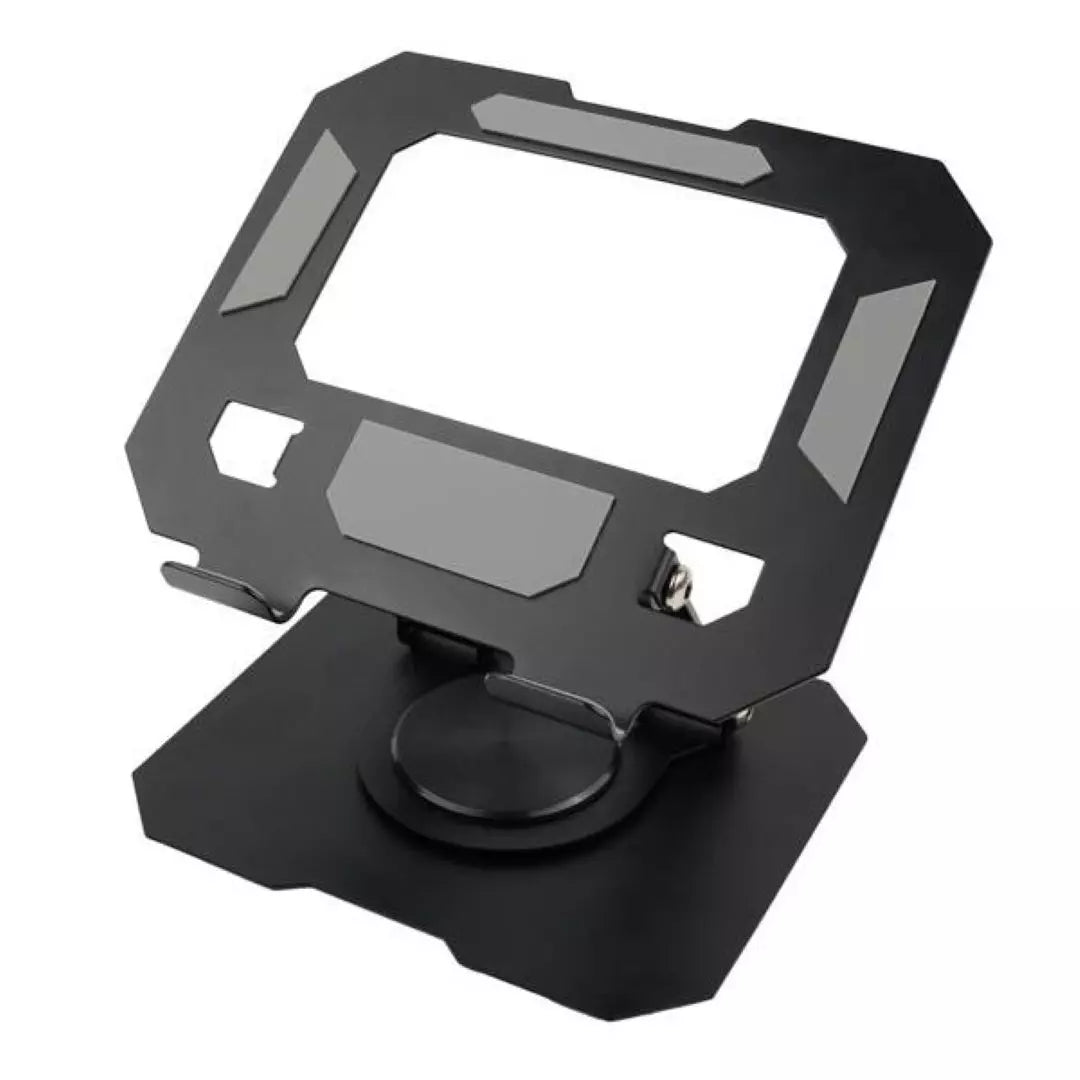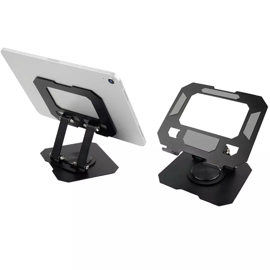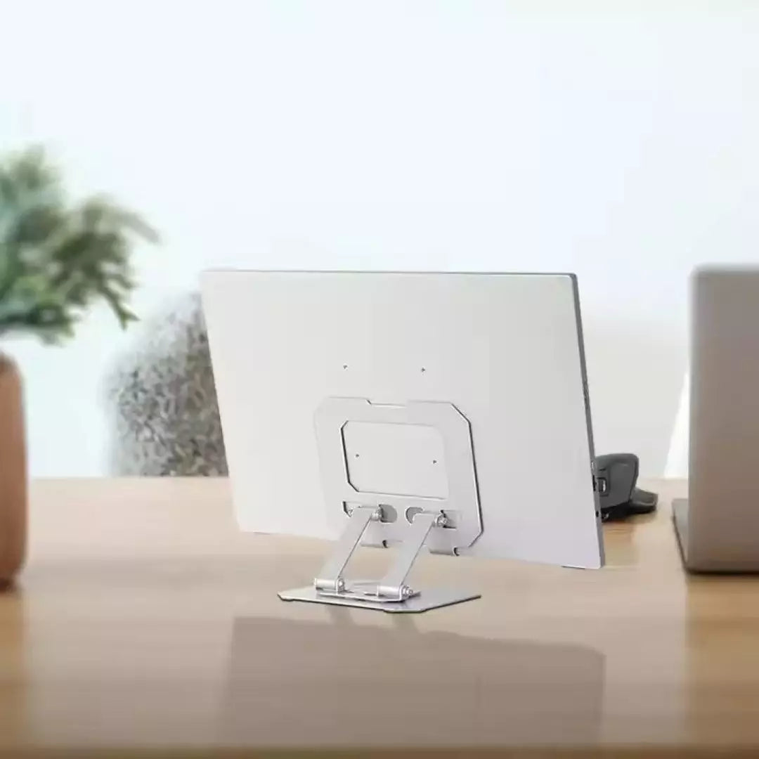 Soporte plegable para laptop/tablet en aleación de aluminio, doble bisagra ajustable en altura/ángulo.